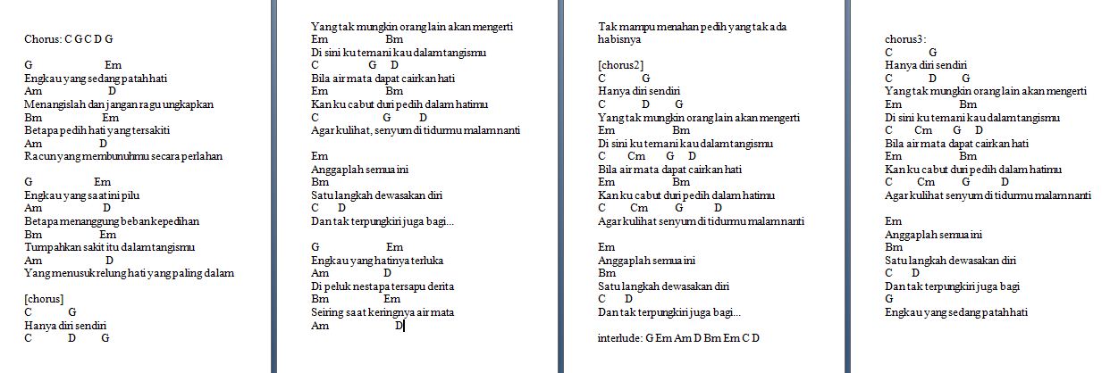 Am hanya diri em sendiri f yang tak mungkin orang g lain akan c mengerti em di sini ku temani kau dalam am tangismu f bila air mata dapat cair c kan hati am kan ku cabut duri pedih dalam em hatimu f agar kulihat s g enyum di tidur c mu malam nanti am anggaplah semua ini em satu langkah dewasakan diri f dan tak terpungkiri juga bagi. Create and get 5 iq. Last child feat giselle seluruh nafas ini.