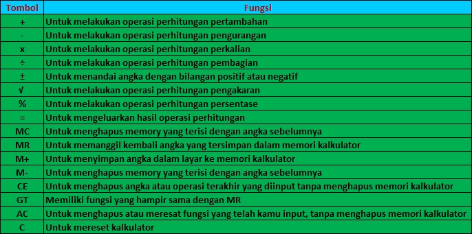 M memory plus sesuai namanya tombol ini punya fungsi menambahkan hasil perhitungan ke memori. Nah itu tadi fungsi dan kegunaan tombol tombol yang ada pada kalkulator. Sebenarnya fungsi kedua tombol tersebut sama kok.
