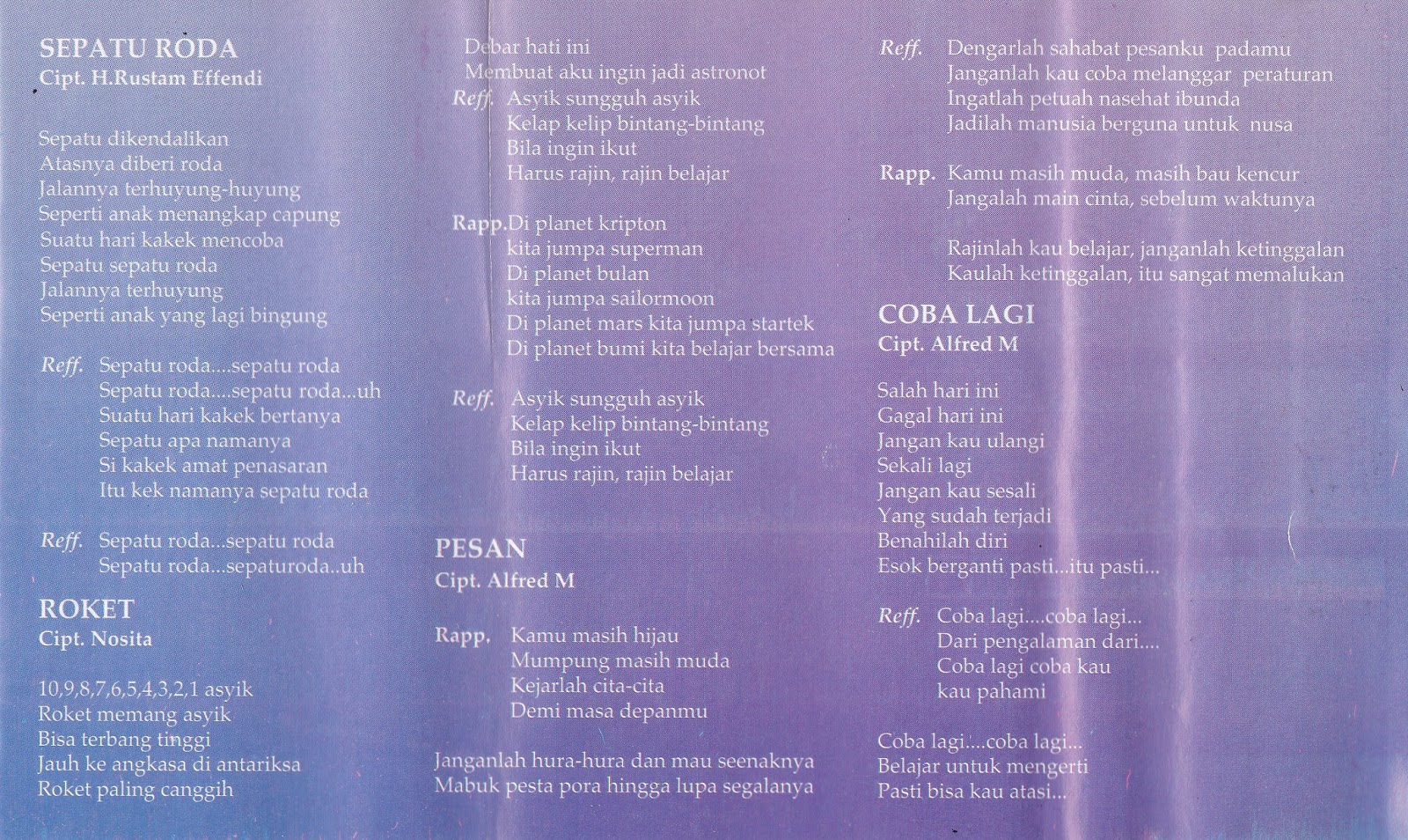 Meskipun telah menciptakan banyak sekali lagu anak lainnya topi saya bundar adalah salah satu lagu terpopuler pak kasur. Lagu anak ayam diciptakan oleh masagus abdullah mahmud atau lebih dikenal dengan nama at. A ade irma suryani at mahmud aku anak indonesia at mahmud aku seorang kapiten ambilkan bulan bu at mahmud amelia at mahmud amin membolos ampar ampar pisang lagu anak daerah dari kalimantan selatan aku anak gembala at mahmud anak kambing saya anak kuat ibu sud apuse lagu anak daerah dari papua awan putih at mahmud.
