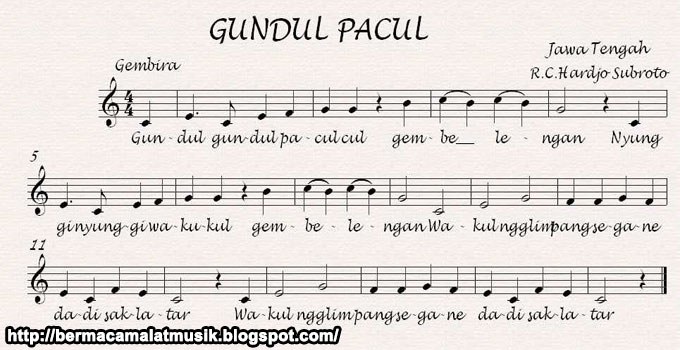 Selain gamelan jawa ada juga gamelan sunda bali madura dan batak. Gundul pacul adalah sebuah lagu permainan berbahasa jawa yang berasal dari provinsi jawa tengah. Di dalam buku lagu lagu daerah nama r.
