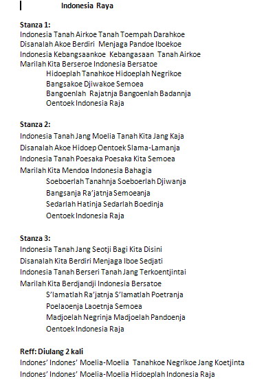 Nah itulah teks lirik lagu indonesia raya yang lengkap baik versi 1 stanza yang resmi atau versi 3 stanza yang original. Download indonesia raya 3 stanza versi asli free berikut ini adalah tautan free download lagu indonesia raya 3 stanza mp3 full ciptaan w. Karena kita terbiasa menyanyikan lagu kebangsaaan indonesia raya hanya 1 stanza kemungkinan diantara kita banyak yang lupa atau tidak tahu stanza ke 2 dan stanza ke 3 dari lagu indonesia raya.